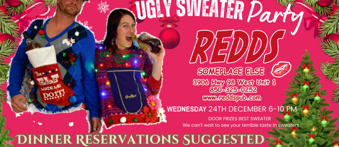 13th Annual Christmas Eve Ugly sweater party at Redds Pub dinner show- come on over for door prizes and more - call for table reservations 850-325-0252